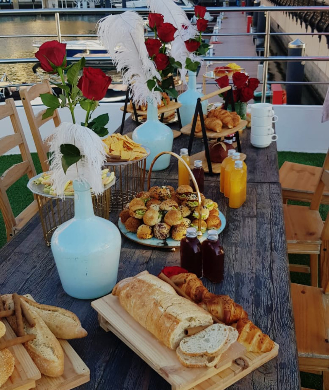 It is the best choice at all to enjoy the sea atmosphere with our many options from the buffet in conjunction with our partners of five-star hotels. Add to your reservation the buffet and it will The crew members will contact you to determine the time and the best option for you from our many options. The buffet package start from 10 pax
