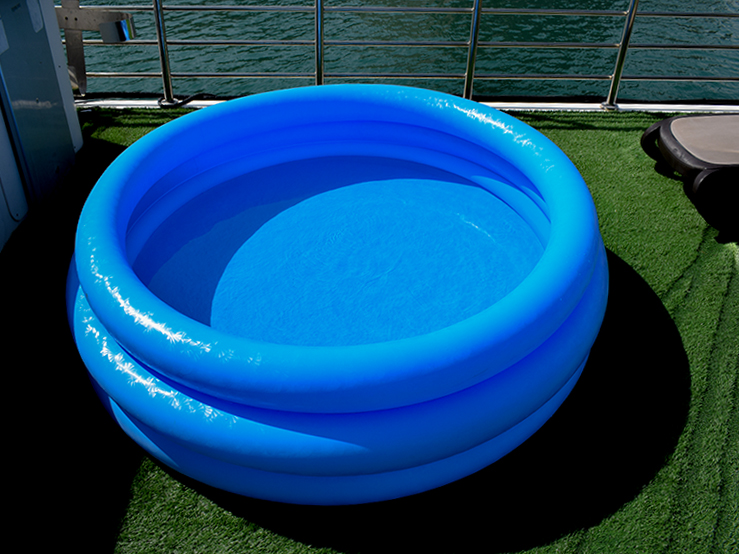 inflatable sea pools are a safe and comfortable way to enjoy swimming out in the sea during your booking experience. The pools provide protection from jellyfish and sea critters with tightly woven netting, and provide an enclosed area to prevent charter guests from floating away in the current.